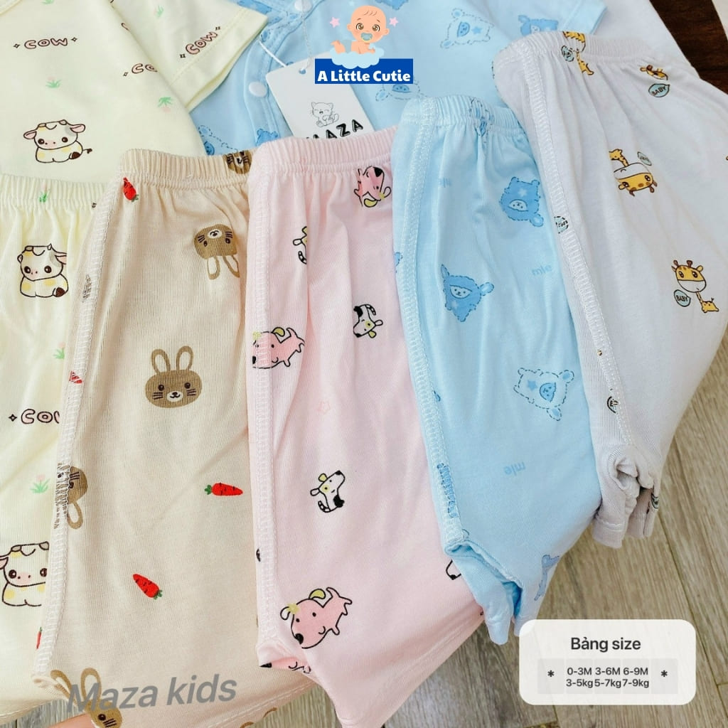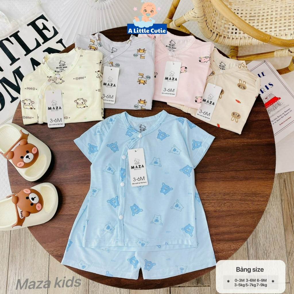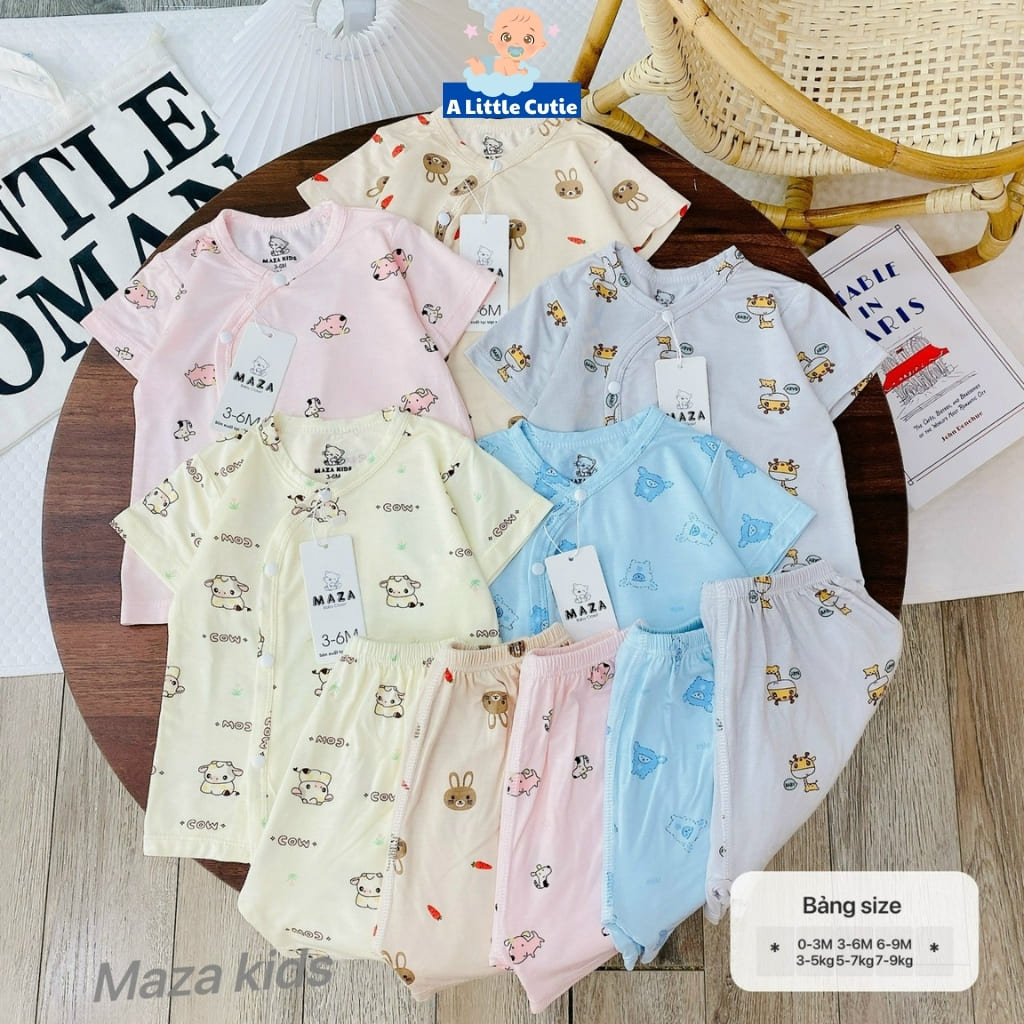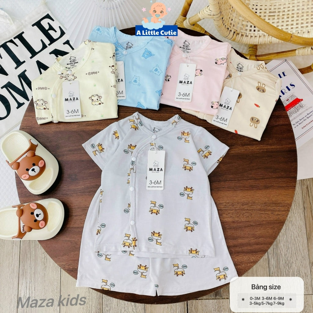– Thiết kế: Thiết kế áo vạt chéo thêm bảo vệ phần ngực và bụng phần cơ thể nhạy cảm. Cúc bấm mỏng mà vẫn bền, chắc chắn không lo hằn lên da bé. Quần thiết kế cạp chun đáp đũng mẹ mặc bỉm cho con vô tư nha. Đường may chỉn chu, gọn gàng cùng nhiều màu sắc, họa tiết xinh xắn đáng yêu.