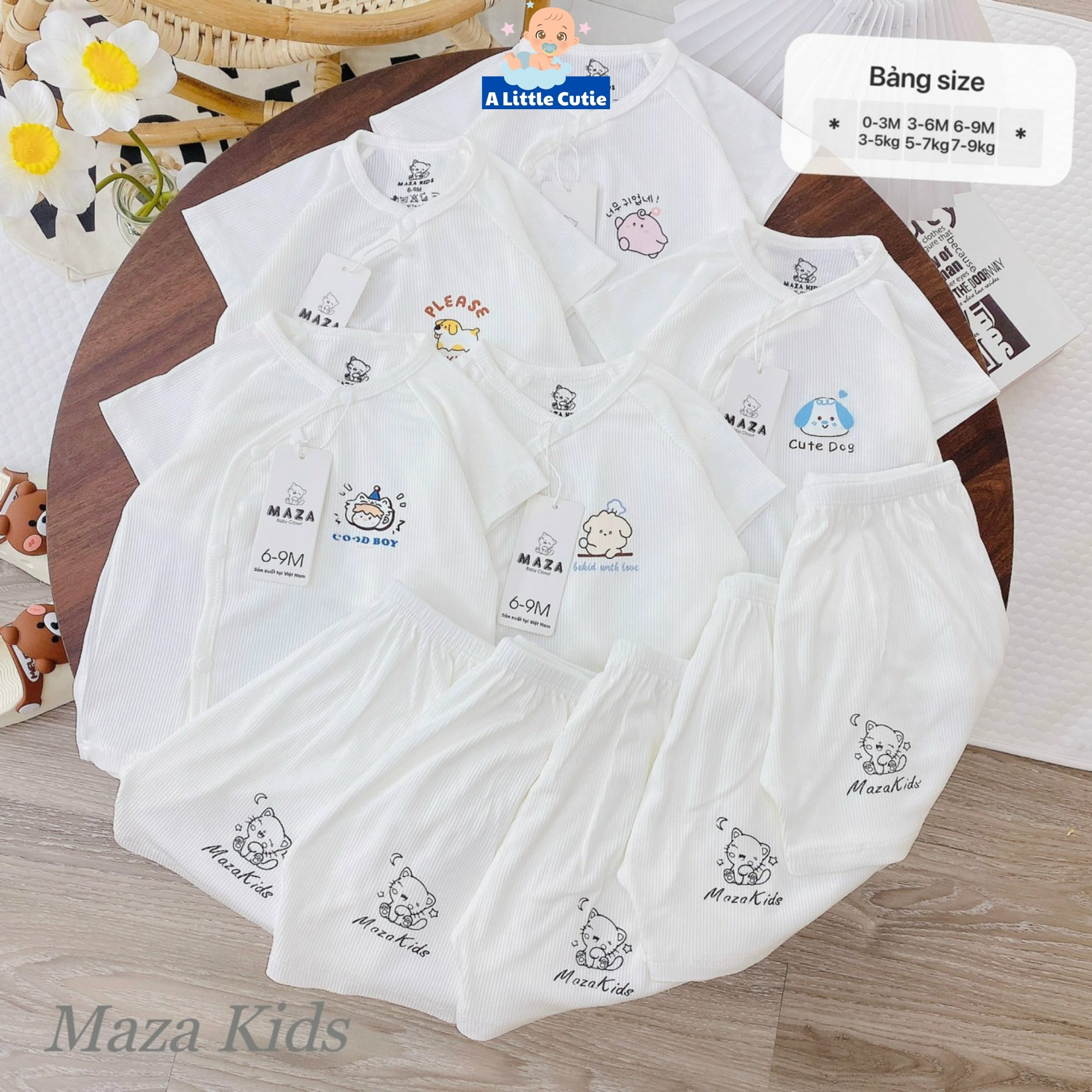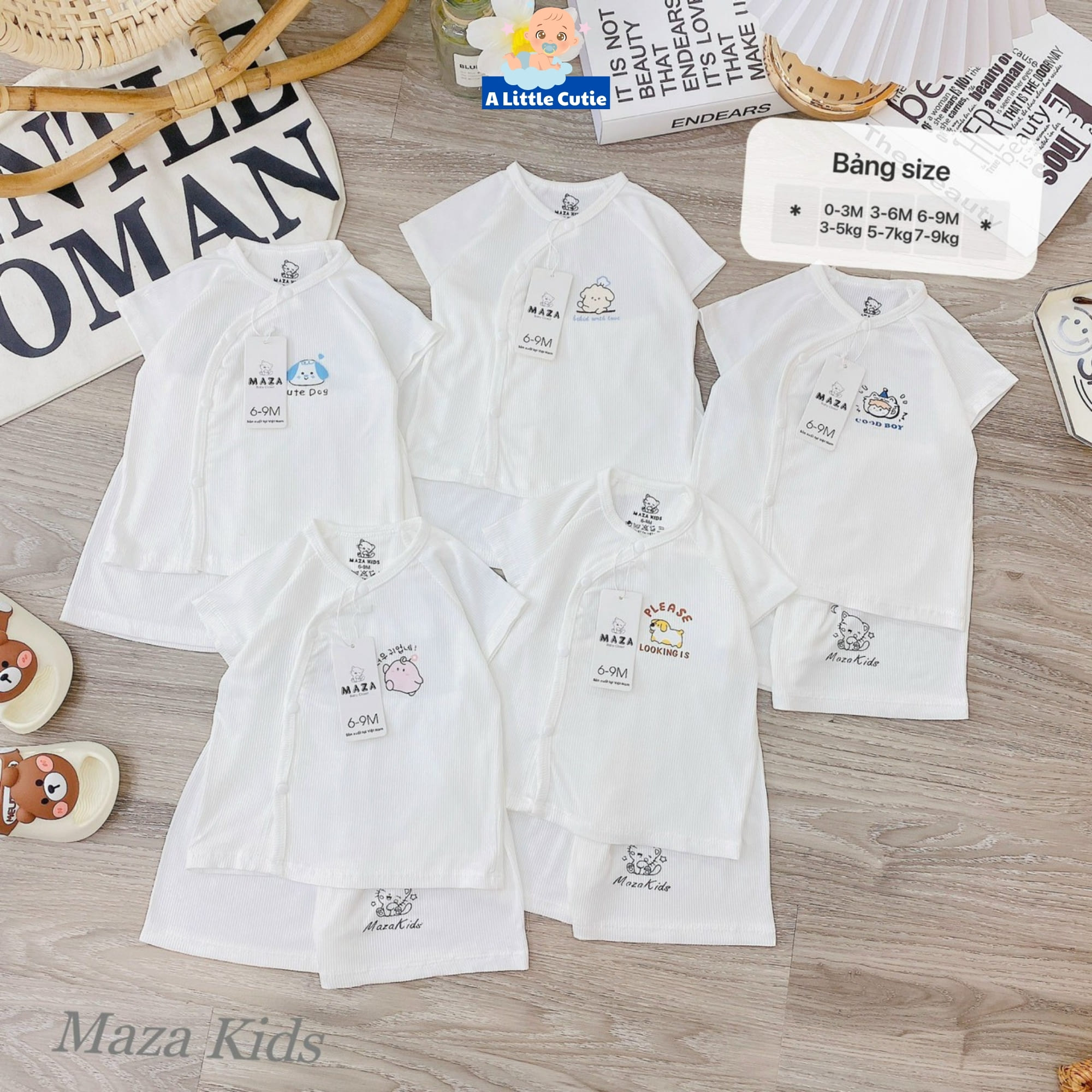 – Bộ cộc sơ sinh, quần áo bé trai bé gái cộc tay Vải tăm lạnh BQA026 – A LITTLE CUTIE. Bộ áo cộc quần cộc đáp đũng; nền trắng, họa tiết in nhiệt bền và sắc nét.