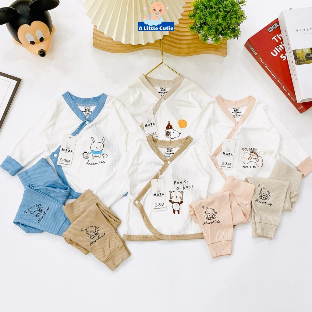 – Thiết kế: Thiết kế áo vạt chéo thêm bảo vệ phần ngực và bụng phần cơ thể nhạy cảm. Cúc bấm mỏng mà vẫn bền, chắc chắn không lo hằn lên da bé. Quần thiết kế cạp cao đáp đũng mẹ mặc bỉm cho con vô tư nha, gấu bo tròn vừa vặn. Đường may chỉn chu, gọn gàng cùng nhiều màu sắc, họa tiết xinh xắn đáng yêu.