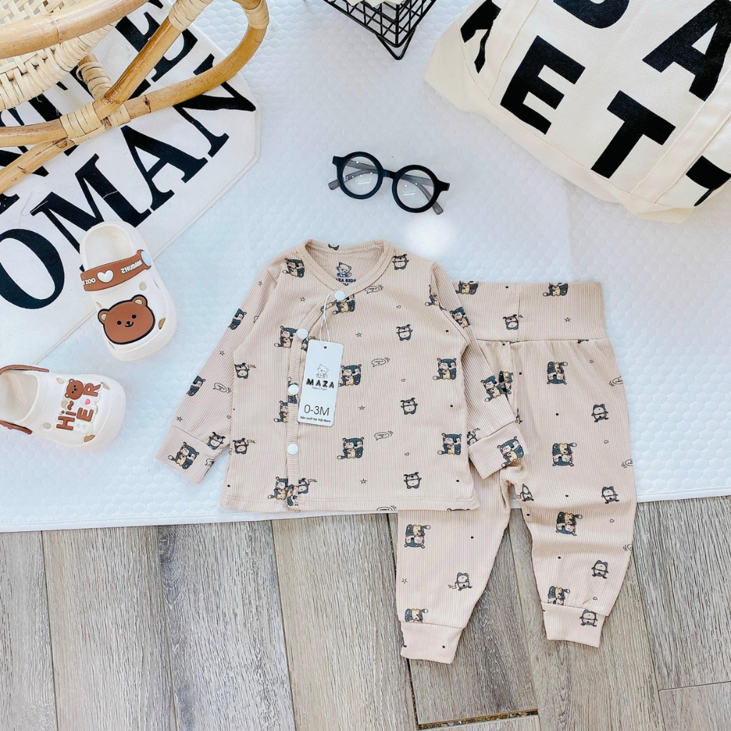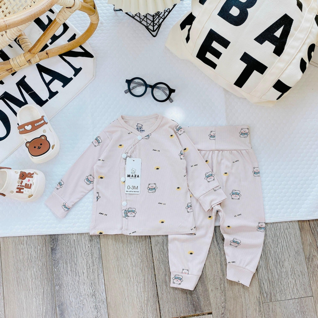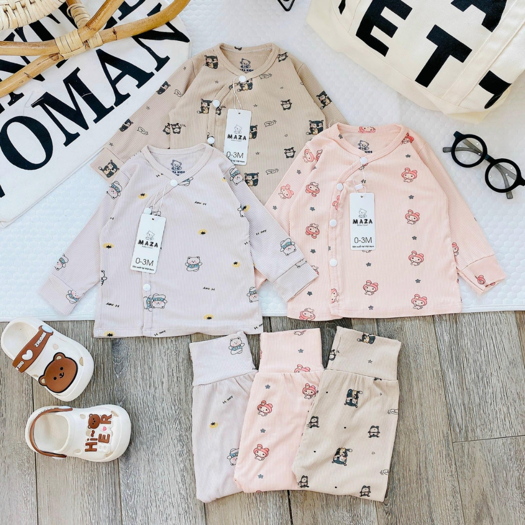 – Thiết kế: Thiết kế áo vạt chéo tăng cường bảo vệ ngực, bụng phần cơ thể nhạy cảm. Cúc bấm mỏng mà vẫn bền, chắc chắn không lo hằn lên da bé. Quần thiết kế cạp cao đáp đũng mẹ mặc bỉm cho con vô tư nha, gấu bo tròn vừa vặn. Đường may chỉn chu, gọn gàng cùng nhiều màu sắc, họa tiết xinh xắn đáng yêu.