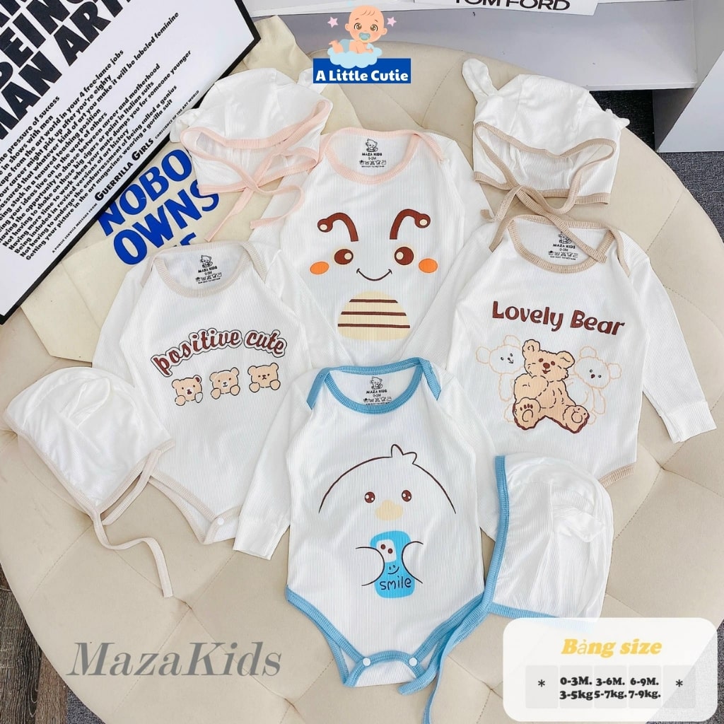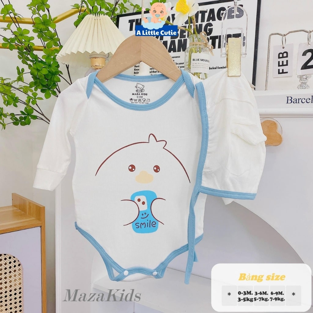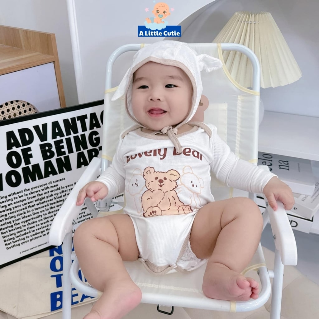 – Bodysuit Cho Bé Body Chip Dài Tay Vải Tăm Lạnh Cao Cấp Tặng Kèm Mũ BDS006 – A LITTLE CUTIE. Bộ body chip dài tay nền trắng in họa tiết kèm mũ vô cùng xinh xắn, đáng yêu.