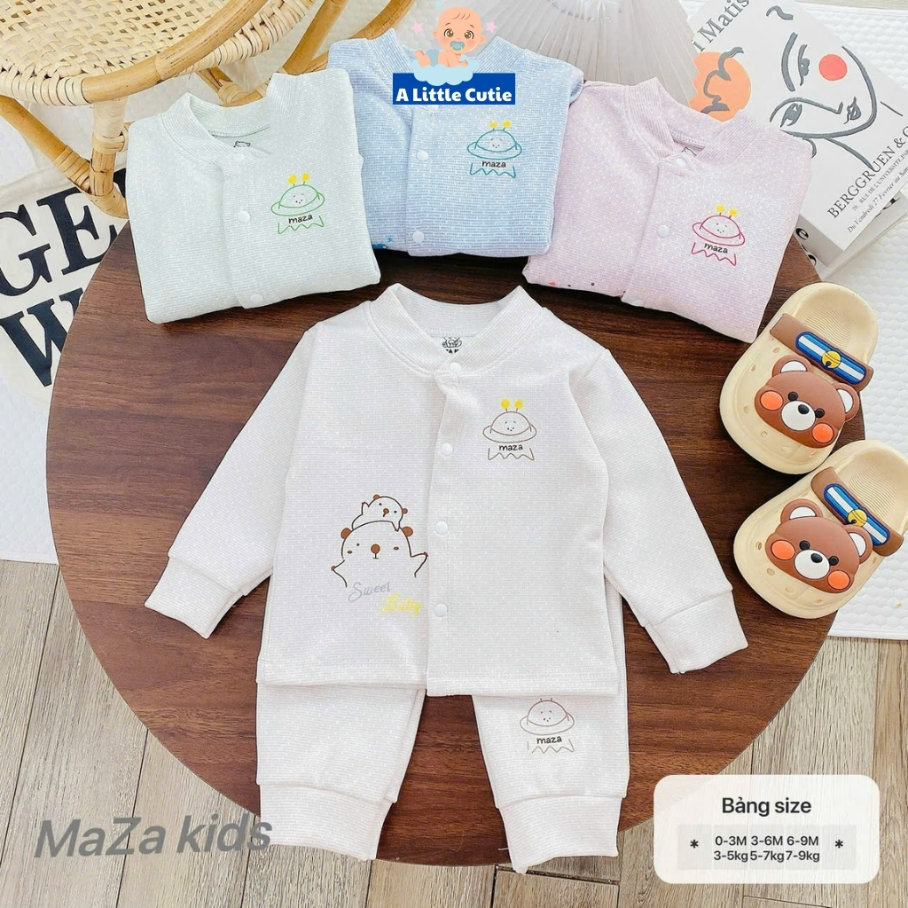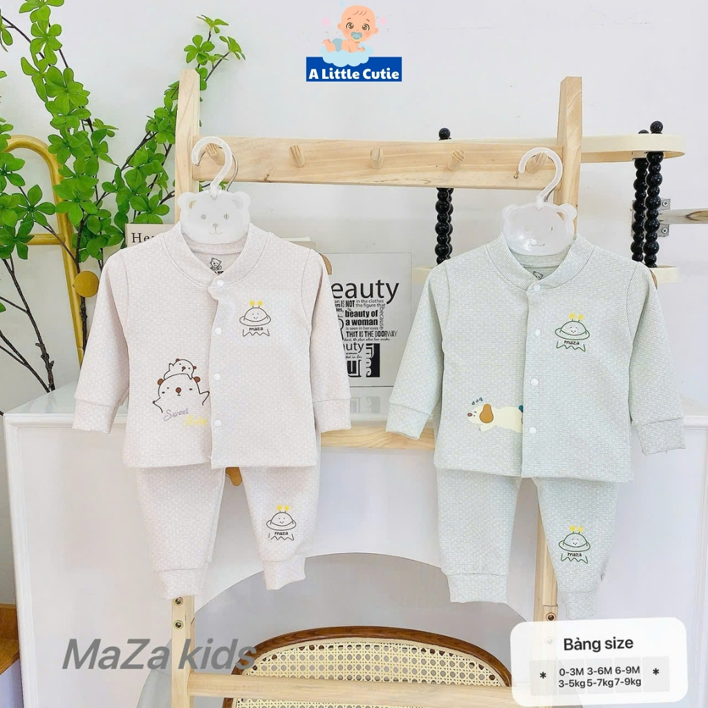 – Quần áo sơ sinh mùa đông, quần áo bé trai bé gái dài tay vải nỉ nhung QC cao cấp BQA035 – A LITTLE CUTIE. Bộ áo dài quần dài đáp đũng; nền màu in họa tiết vô cùng dễ thương.