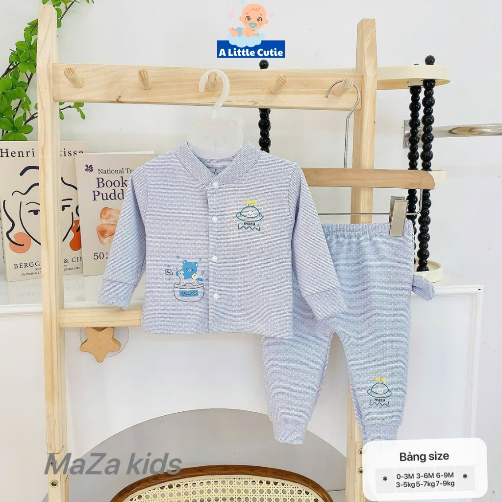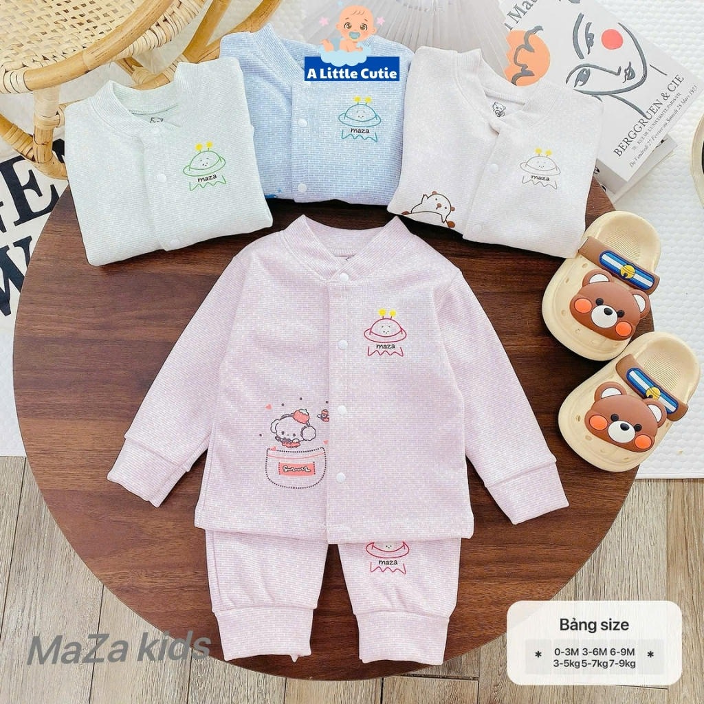 – Thiết kế: Thiết kế áo vạt thẳng. Cúc bấm mỏng mà vẫn bền, chắc chắn không lo hằn lên da bé. Quần thiết kế cạp chun chắc chắn có đáp đũng, gấu bo tròn vừa vặn. Đường may chỉn chu, gọn gàng cùng nhiều màu sắc, họa tiết sử dụng công nghệ in nhiệt sắc nét, xinh xắn đáng yêu.