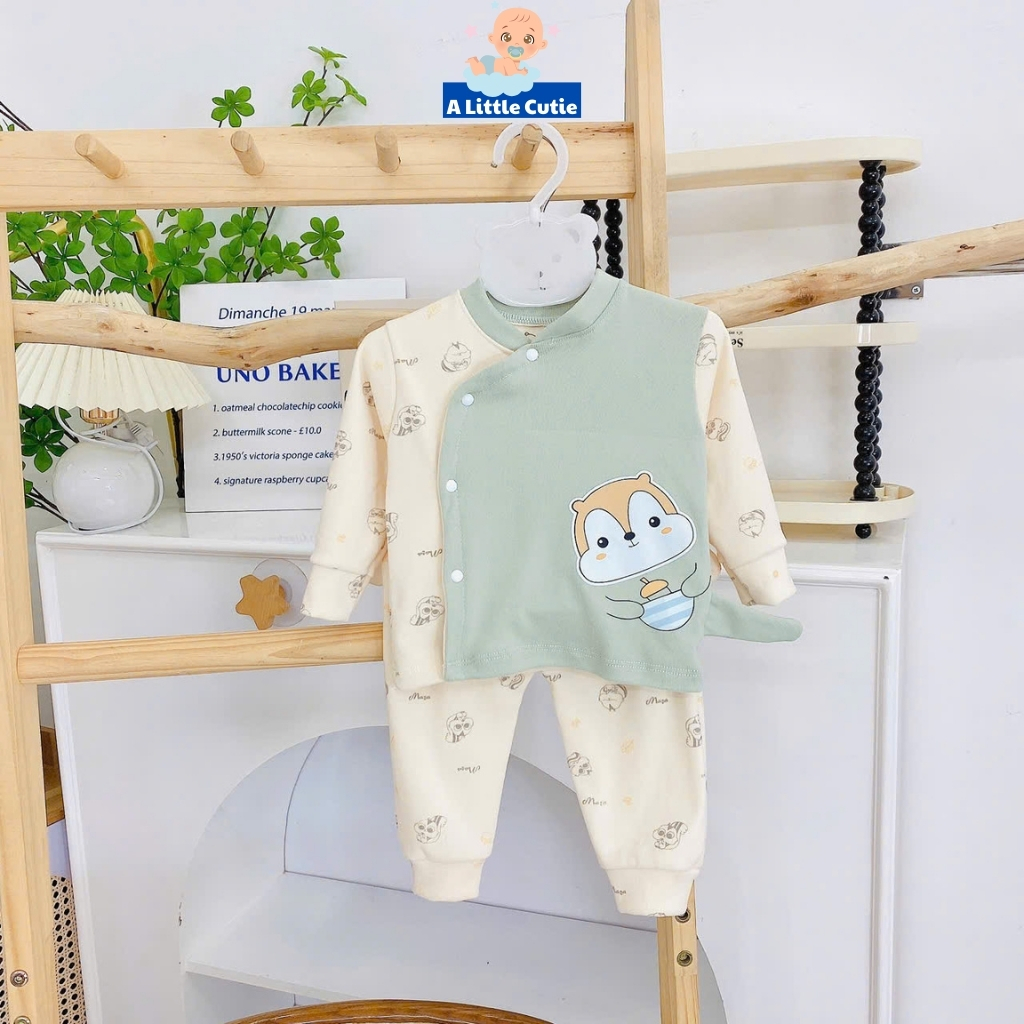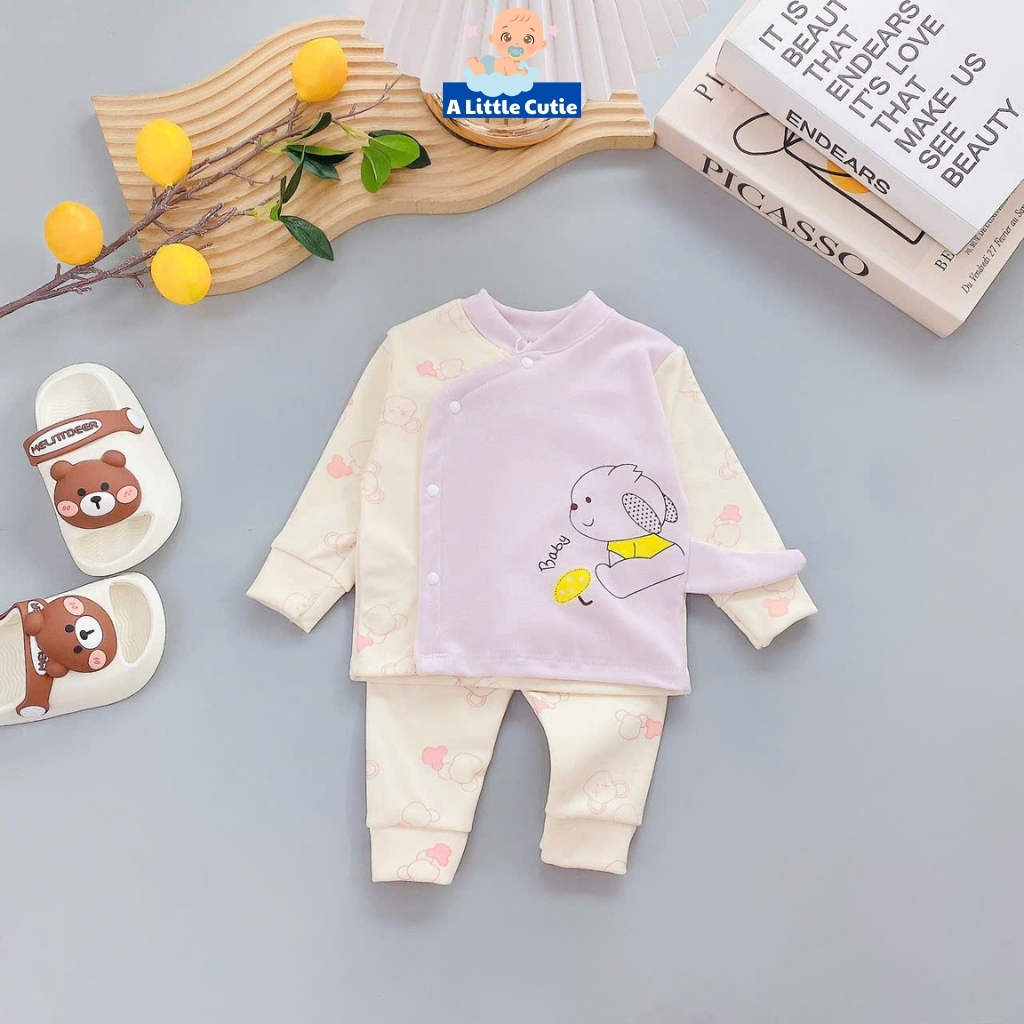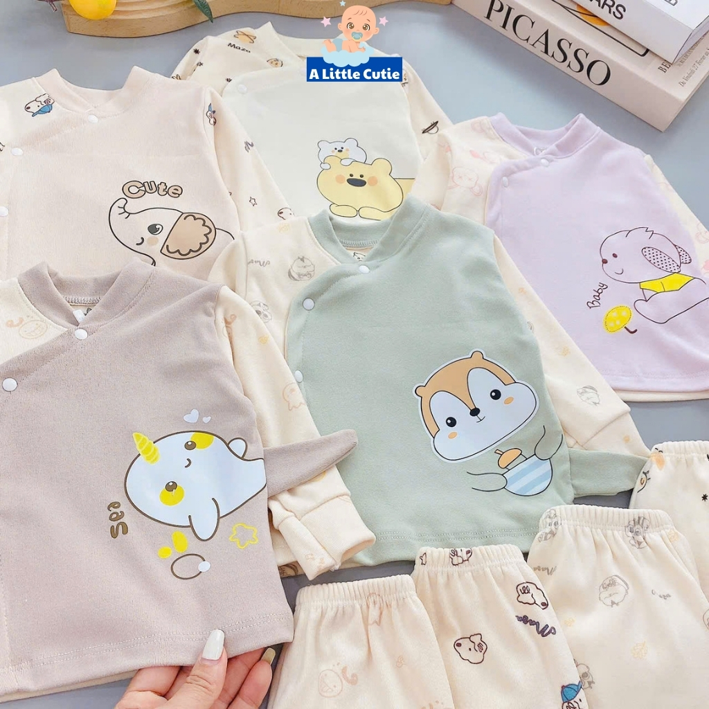 – Quần áo sơ sinh mùa đông, quần áo bé trai bé gái dài tay vải nỉ nhung QC cao cấp BQA036 – A LITTLE CUTIE. Bộ áo dài quần dài đáp đũng; nền màu in họa tiết vô cùng dễ thương.