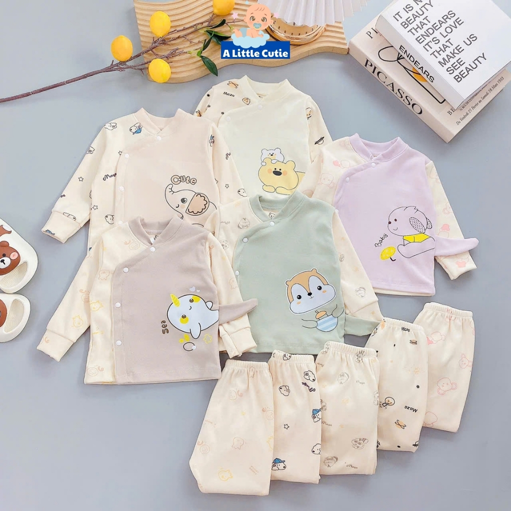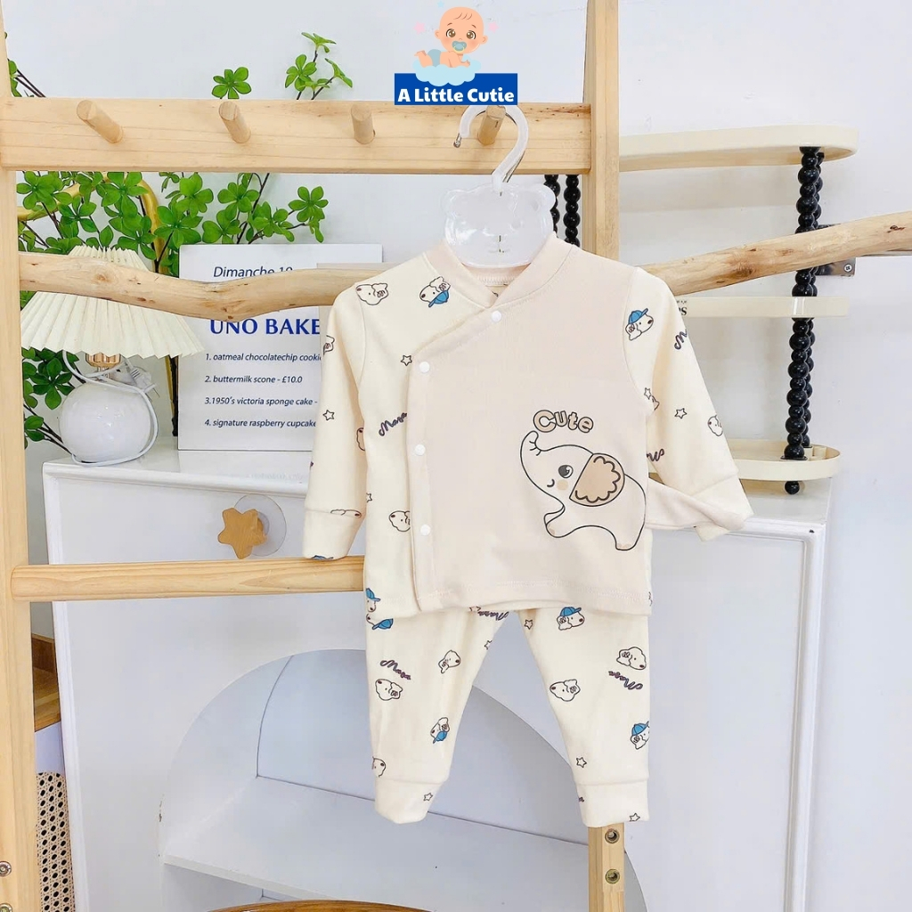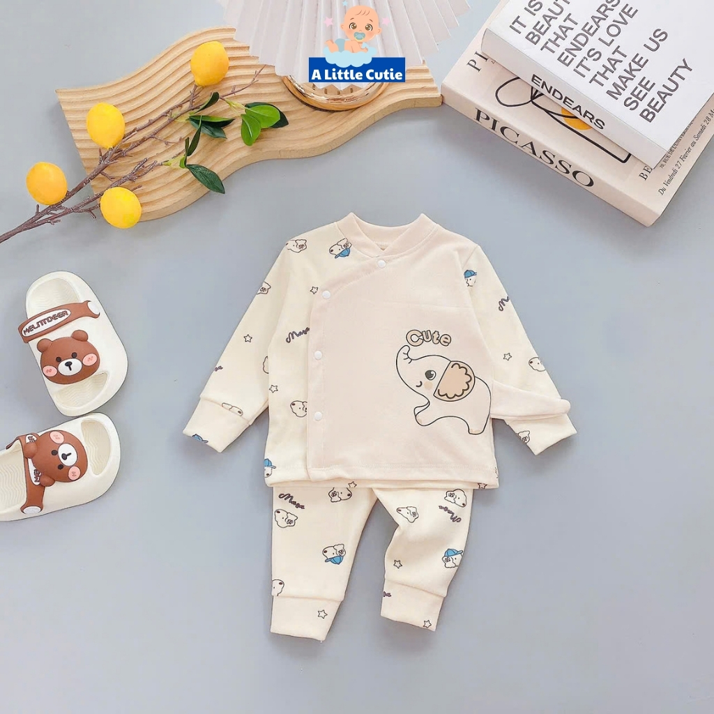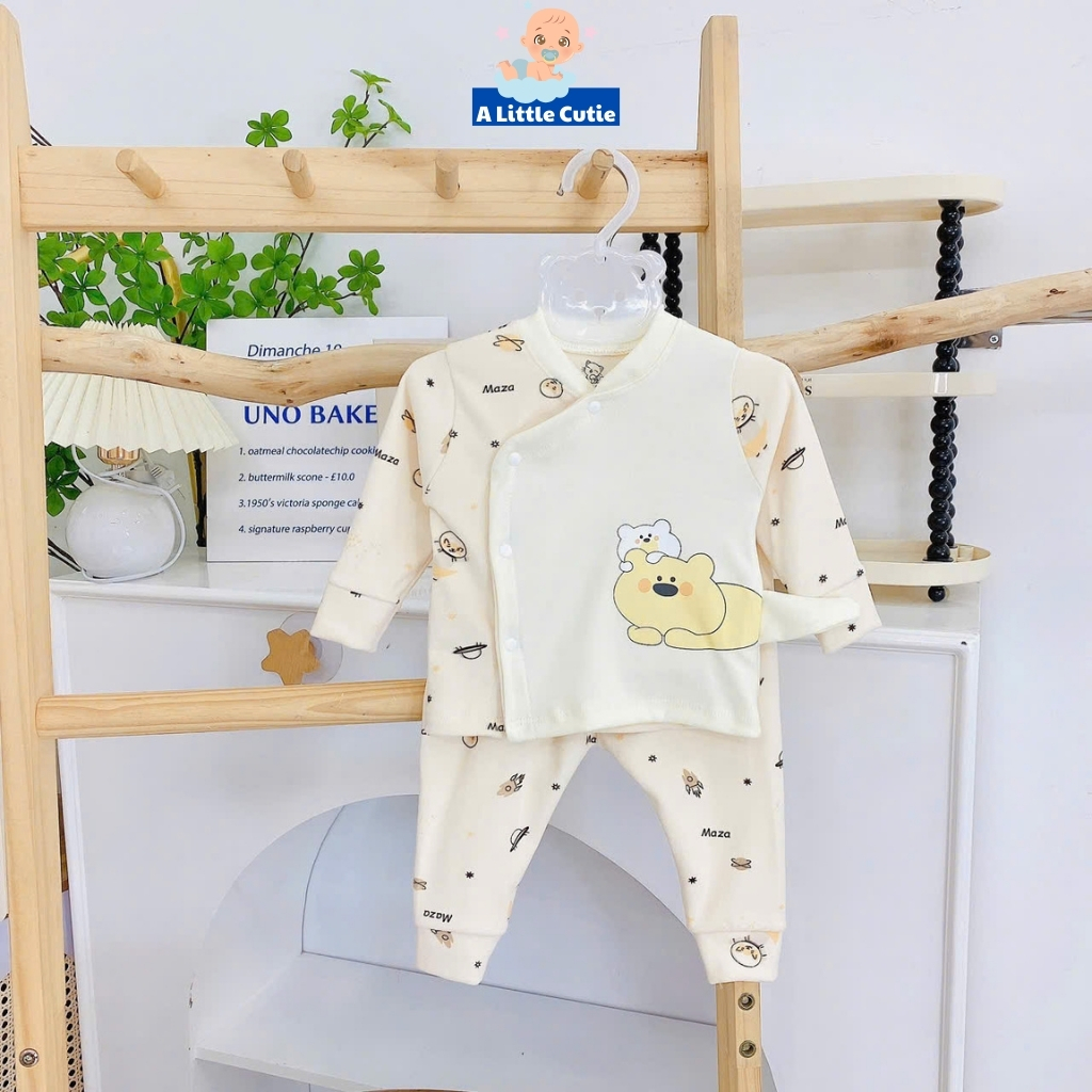 – Quần áo sơ sinh mùa đông, quần áo bé trai bé gái dài tay vải nỉ nhung QC cao cấp BQA036 – A LITTLE CUTIE. Bộ áo dài quần dài đáp đũng; nền màu in họa tiết vô cùng dễ thương.