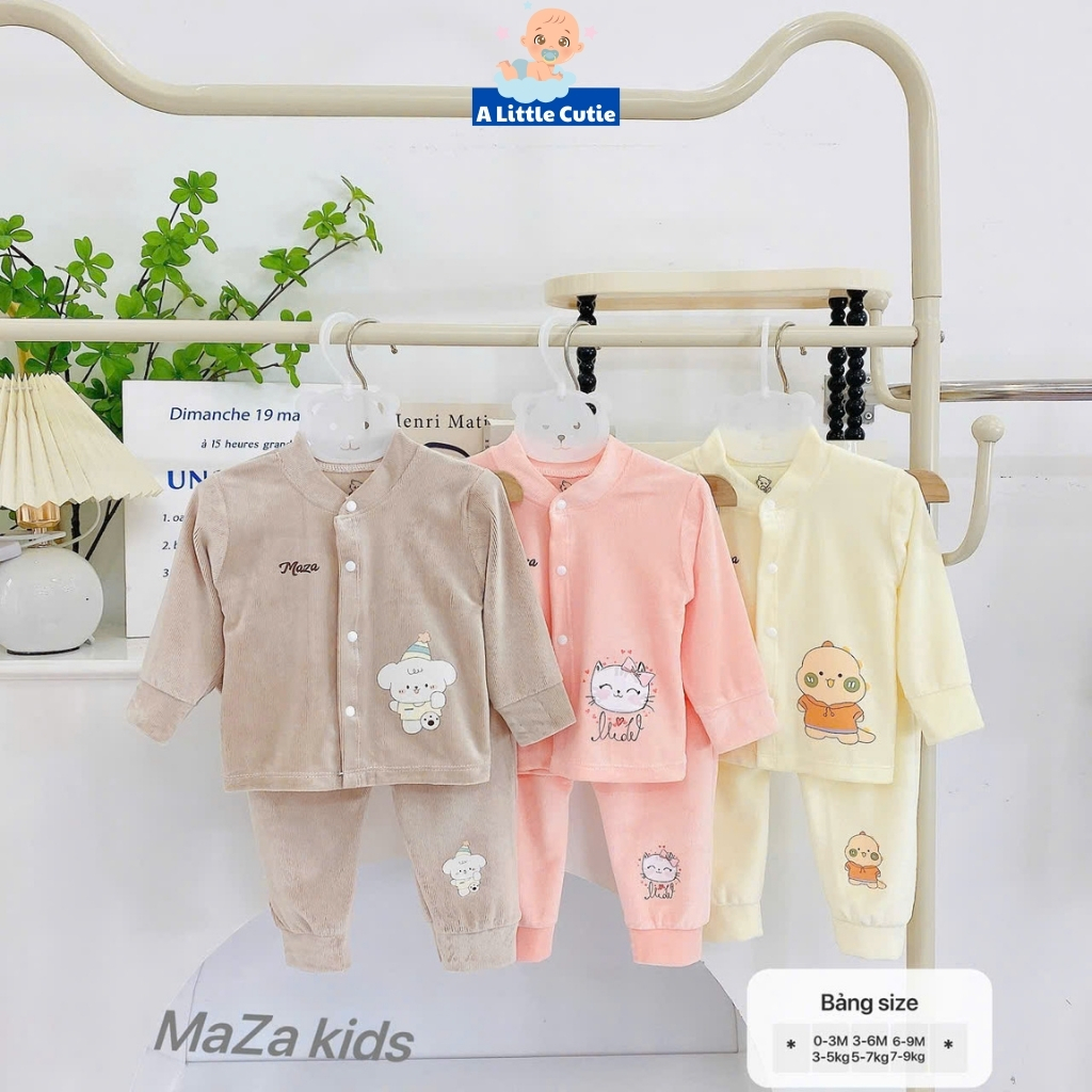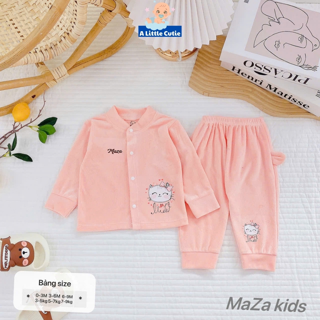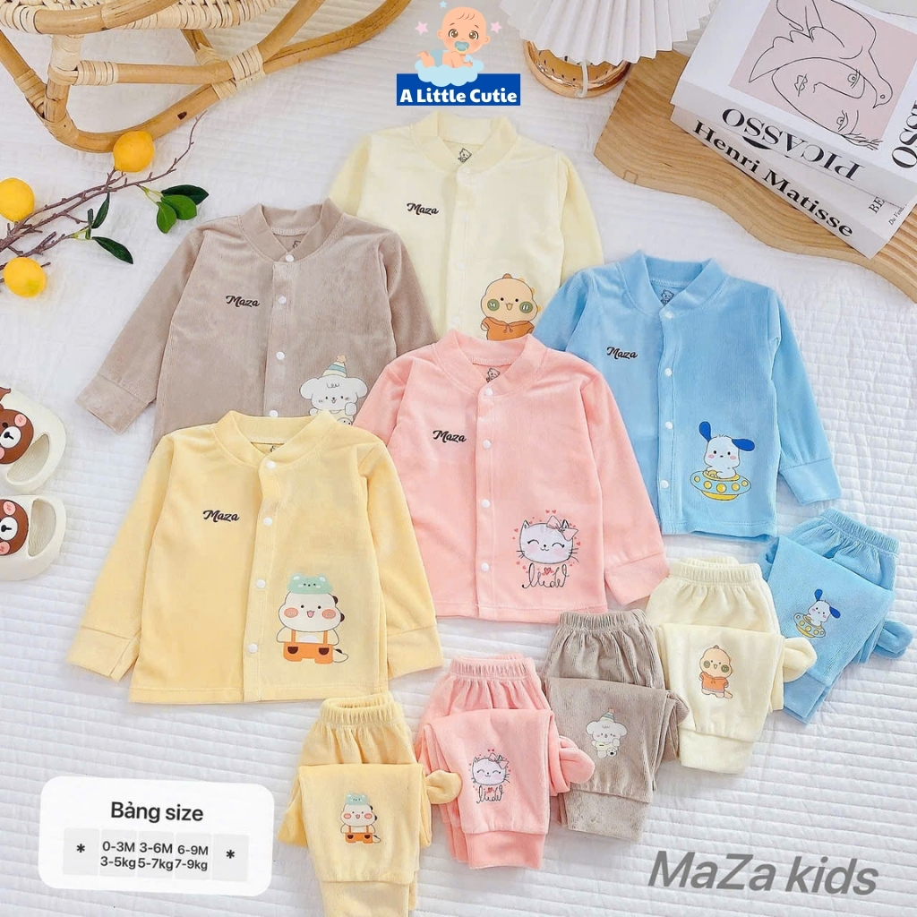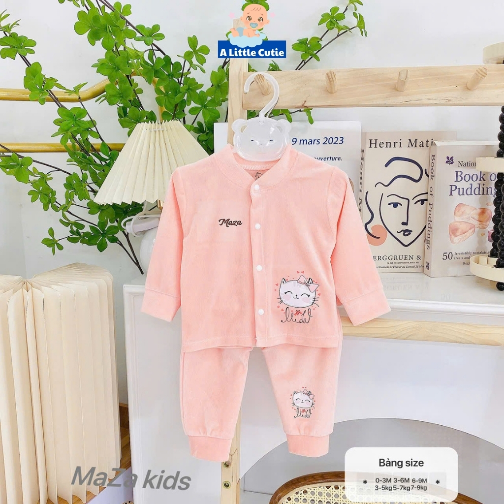 – Quần áo sơ sinh mùa đông, quần áo bé trai bé gái dài tay vải tuyết nhung ấm áp BQA033 – A LITTLE CUTIE. Bộ áo dài quần dài đáp đũng; nền màu in họa tiết vô cùng dễ thương.
