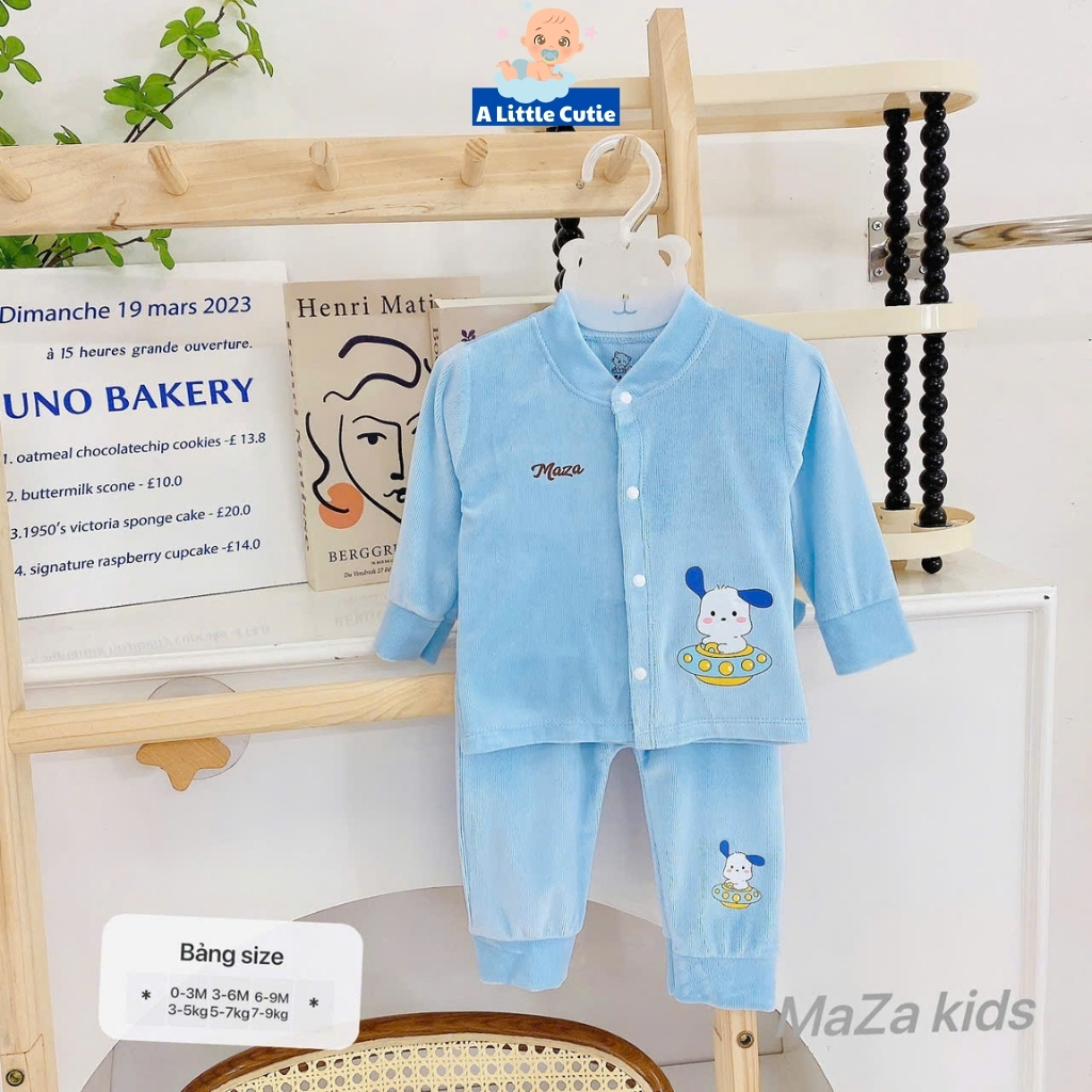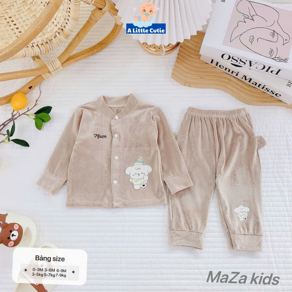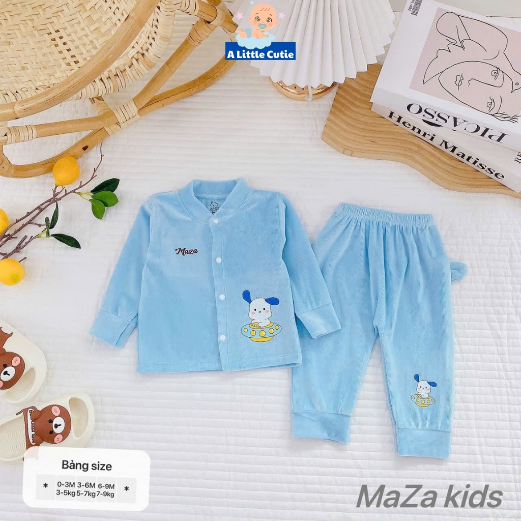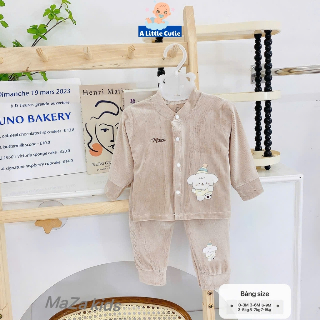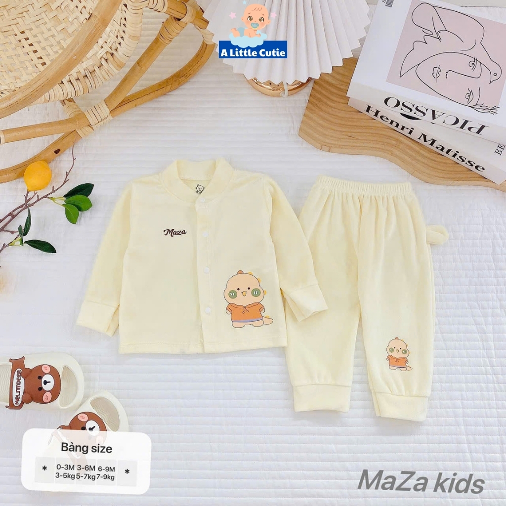 – Quần áo sơ sinh mùa đông, quần áo bé trai bé gái dài tay vải tuyết nhung ấm áp BQA033 – A LITTLE CUTIE. Bộ áo dài quần dài đáp đũng; nền màu in họa tiết vô cùng dễ thương.