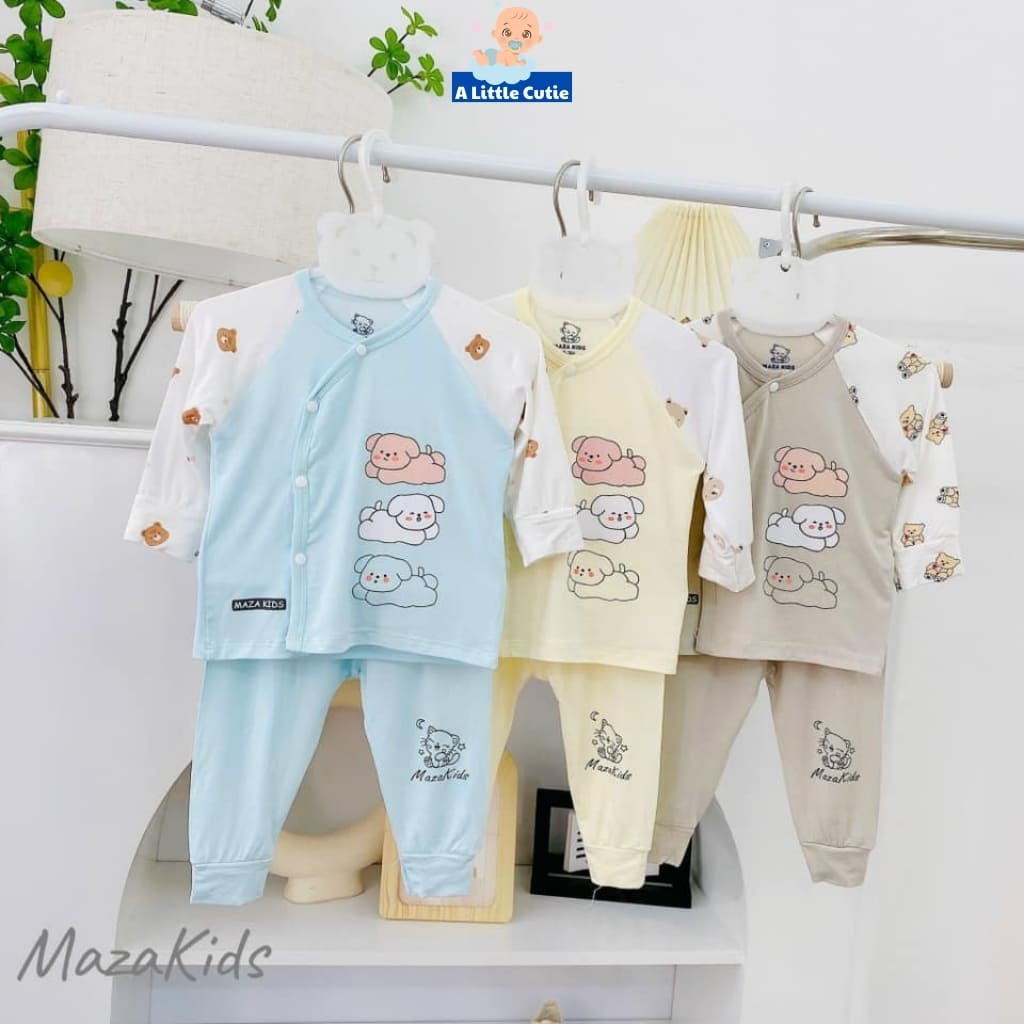 – Thiết kế: Thiết kế áo vạt chéo thêm bảo vệ phần ngực và bụng phần cơ thể nhạy cảm. Cúc bấm mỏng mà vẫn bền, chắc chắn không lo hằn lên da bé. Quần thiết kế cạp cao đáp đũng mẹ mặc bỉm cho con vô tư nha, gấu bo tròn vừa vặn. Đường may chỉn chu, gọn gàng cùng nhiều màu sắc, họa tiết xinh xắn đáng yêu.