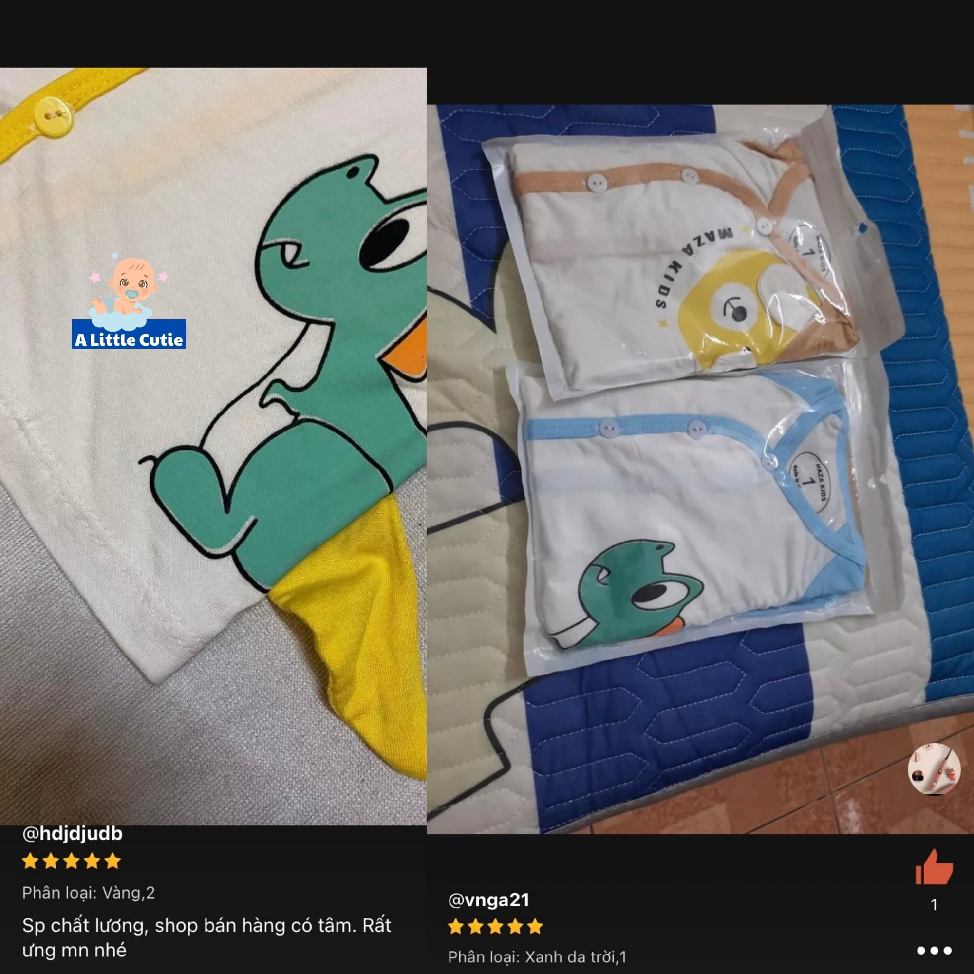 – Thiết kế: Thiết kế áo vạt chéo thêm bảo vệ phần ngực và bụng phần cơ thể nhạy cảm. Cúc cài mỏng mà vẫn bền, chắc chắn không lo hằn lên da bé. Quần thiết kế cạp chun đáp đũng mẹ mặc bỉm cho con vô tư nha, gấu bo tròn vừa vặn. Đường may chỉn chu, gọn gàng cùng nhiều màu sắc, họa tiết xinh xắn đáng yêu.